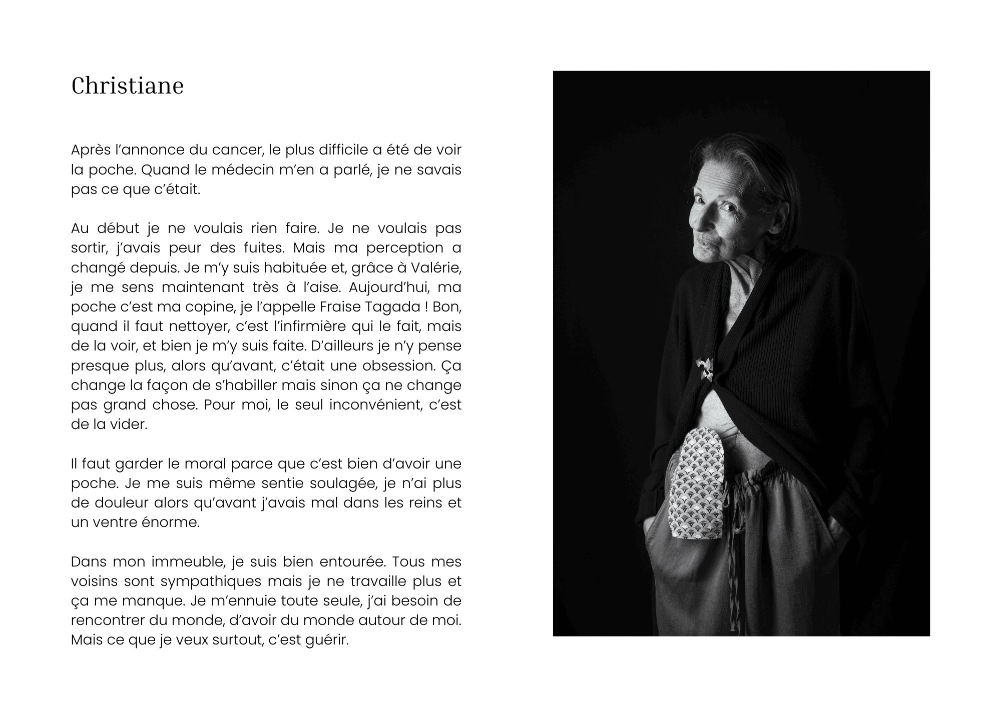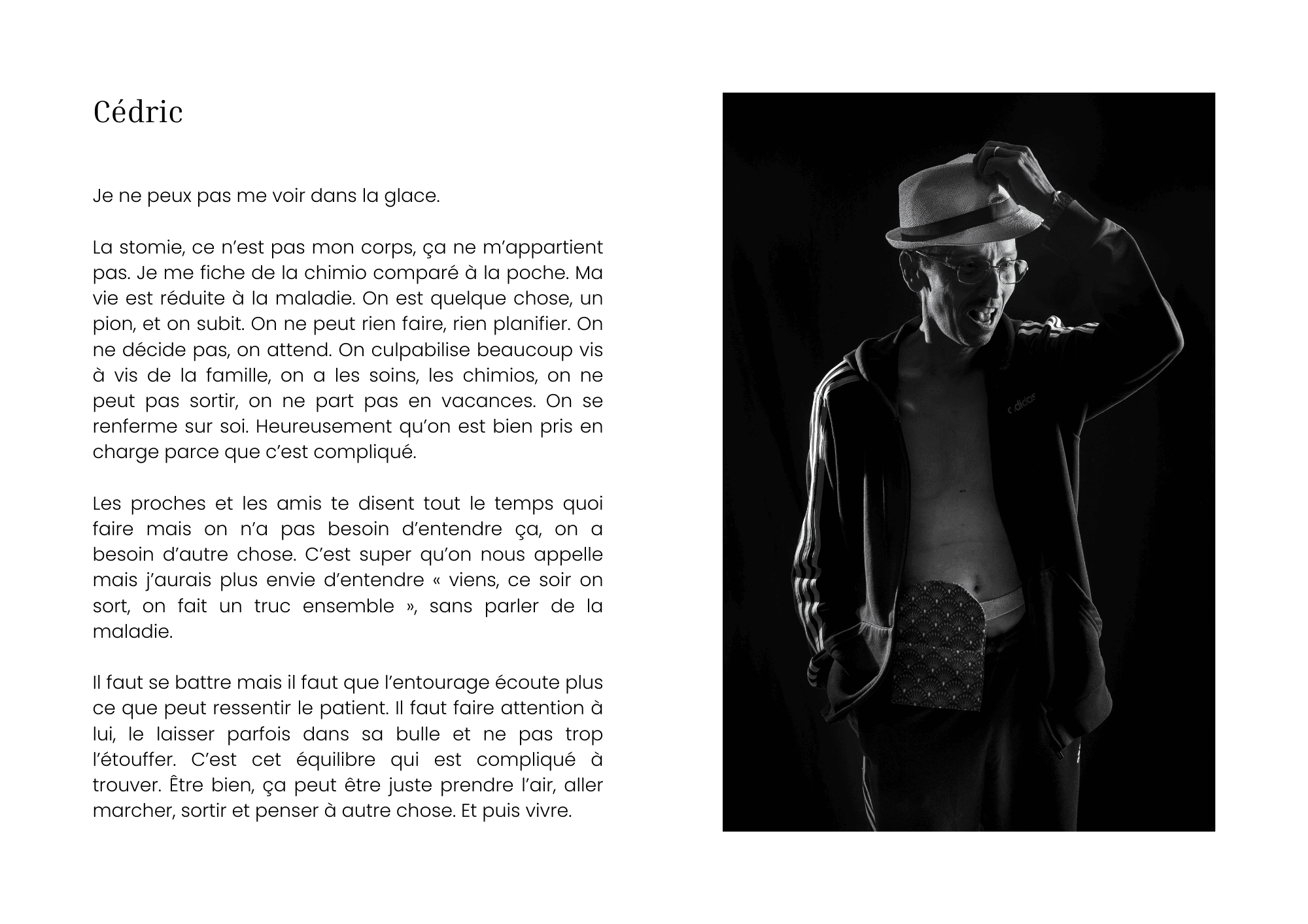 Ce projet artistique a ainsi été imaginé comme un espace de parole pour nos patients, une mise en lumière de leur corps et une invitation au partage d’expérience. En recueillant et en partageant ces témoignages, nous offrons aux autres patients une source précieuse de réconfort et d’inspiration : pour les aider à se sentir moins isolés dans leur parcours de soins et leur permettre de mieux appréhender les défis auxquels ils peuvent être confrontés.